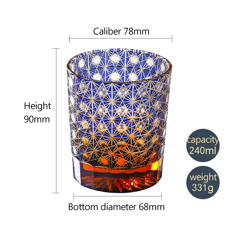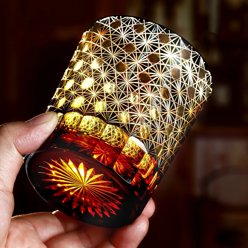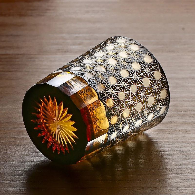 Crafted from high-quality Japanese crystal, this whiskey glass features an elegant handcarved Edo-style design. Perfect for whiskey, bourbon, or your favorite spirits, it adds a refined touch to any drink.